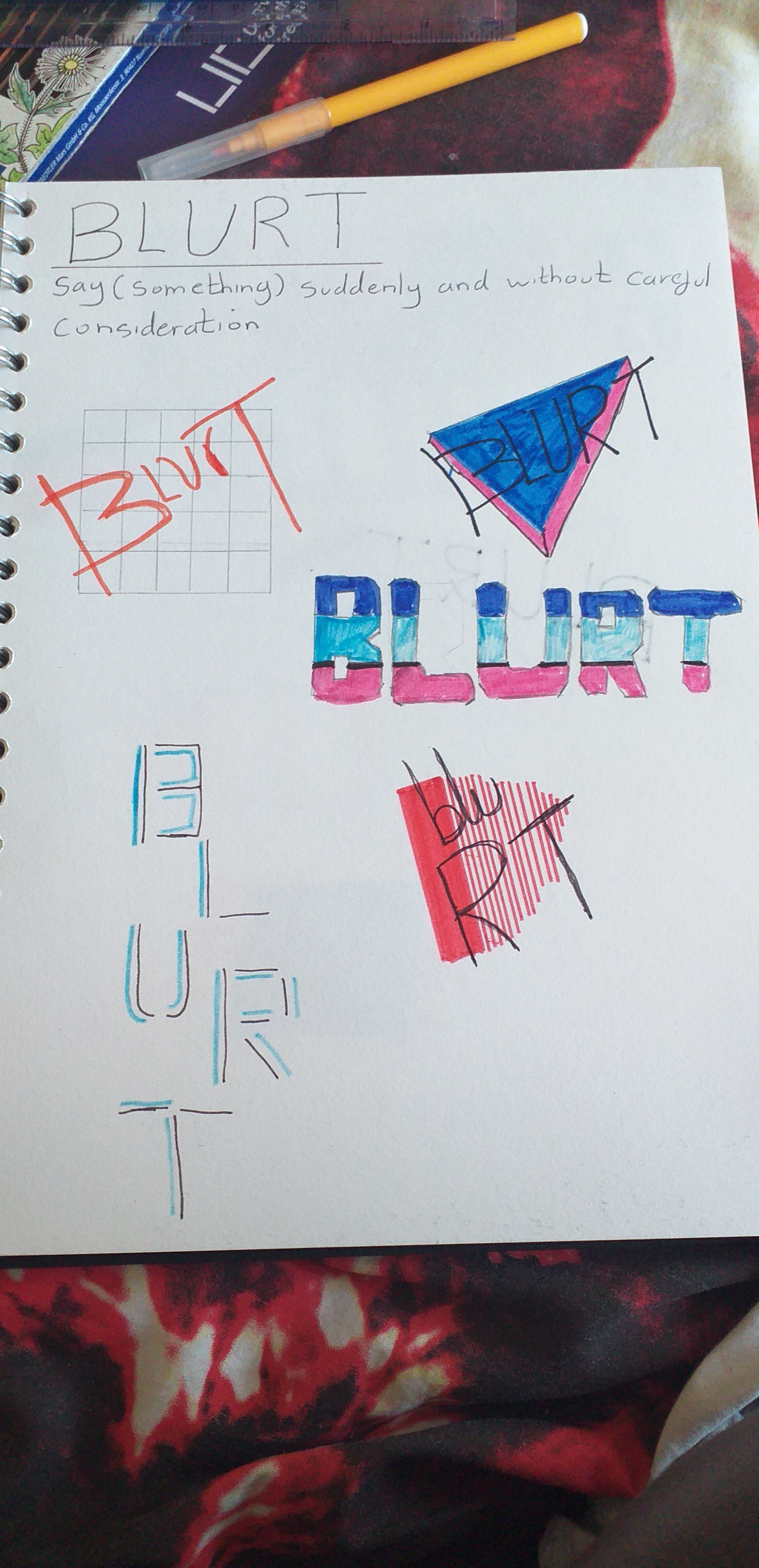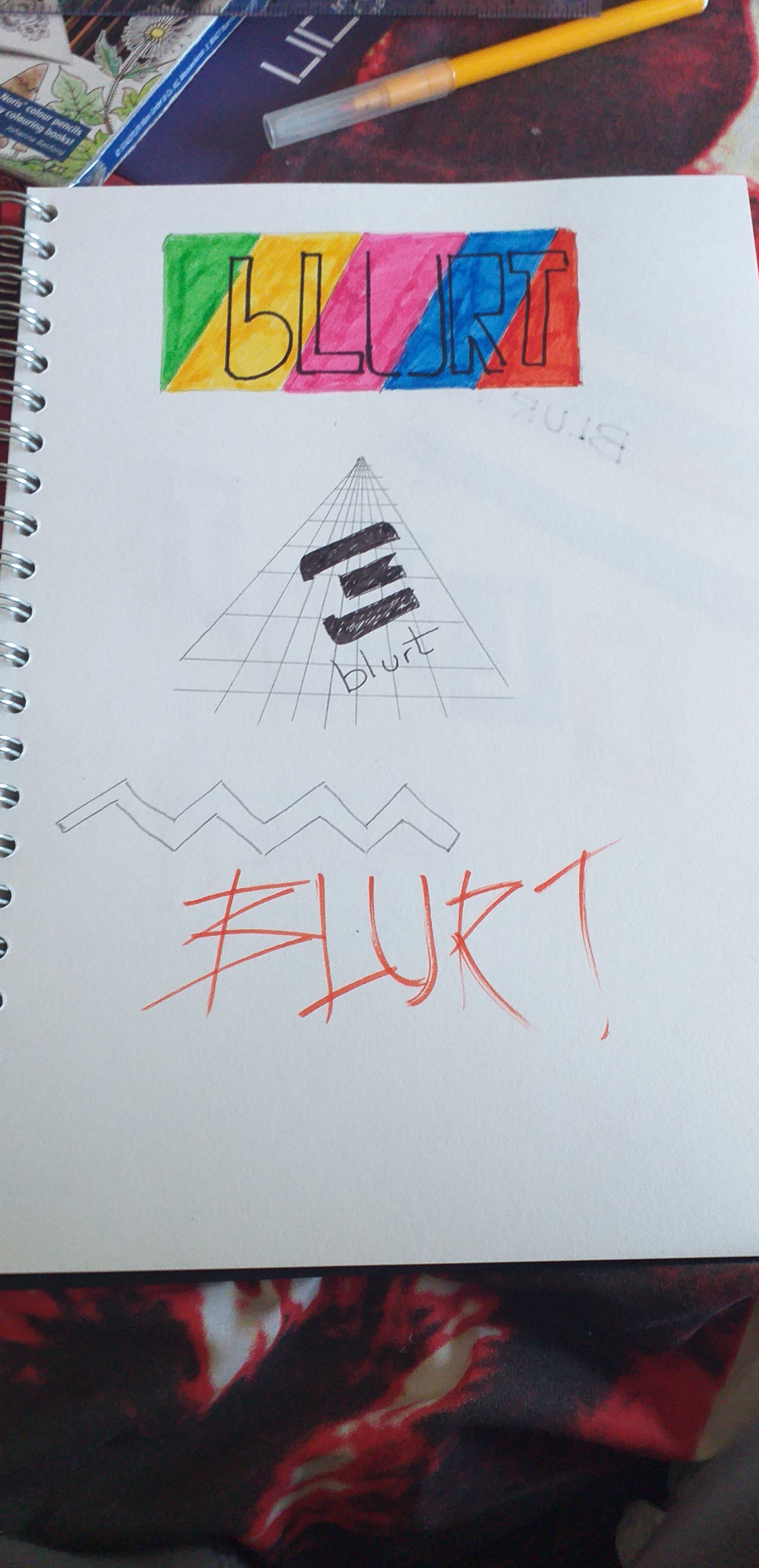 From this screen shot of feedback I got from my colleagues, they really like the logo on page 3 with the triangles overlapping and blurt written in the middle.